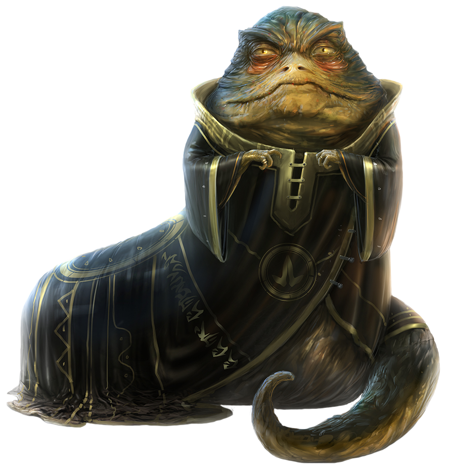 Hutt in Kleidung gesehen, doch hatte Vega es geschafft eine reich verzierte Sith-Robe um seinen massigen Schneckenleib zu drapieren, sodass es einigermaßen vernünftig aussah. Das Gesicht des Sith war unter einer schwarzen Kapuze und einer glänzenden Maske verborgen, in deren Augenlöchern zwei gelbe Augen mit geschlitzten Pupillen glommen. Vega machte eine abschätzige Handbewegung und die anderen Gäste nahmen ihre verstummten Unterhaltungen wieder auf.
