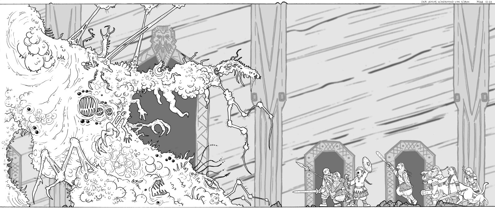 Ich nutze meine kleine, krankheitsbedingte Auszeit, um ein bisschen weiter der Kunst zu frönen...zum Einen einer weiteren Seite meines vierten Enchiridionbandes und zum Anderen mit den ersten Schritten für ein größeres Projekt, welches ich in den kommenden Wochen vollenden will: einem kampflastigen Gruppenbild für unsere zwergische "Hallen, Stollen und Tavernen" Kampagne :D